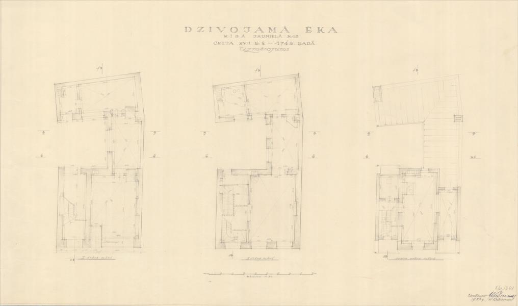 Dzīvojamā ēka. Pirmais stāvs, otrais stāvs, jumta stāvs ( Rīga. Jauniela 18.)