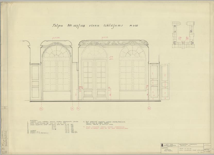 Rundāles pils. Telpa nr. 127/128 (Rundāles novads, Rundāles pagasts. Pilsdrundāle. Rundāles pils.)