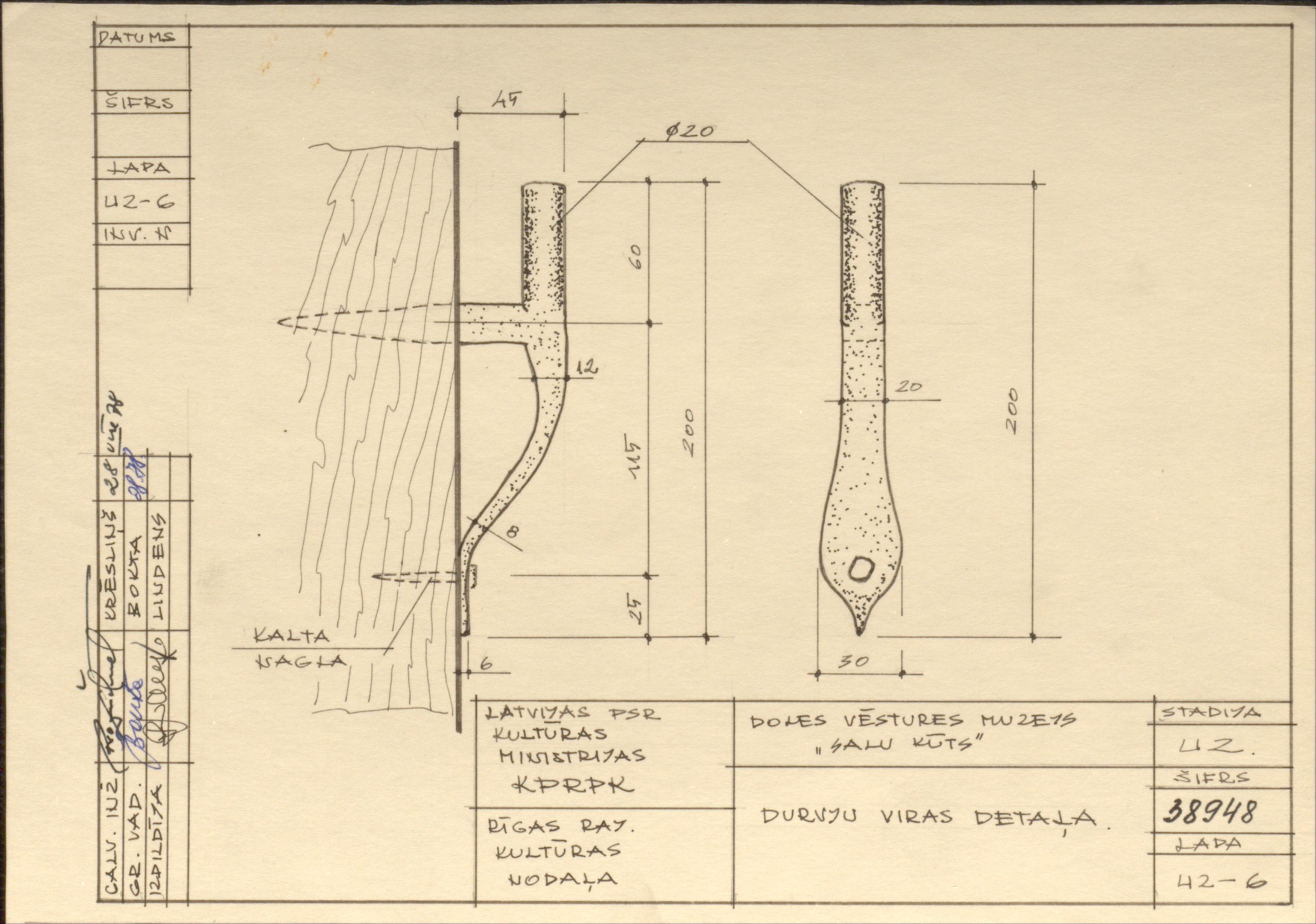 Doles muižas apbūve. Salu kūts. Durvis, durvju viras, detaļas (Salaspils novads, Salaspils pagasts. Daugavas muzejs.)