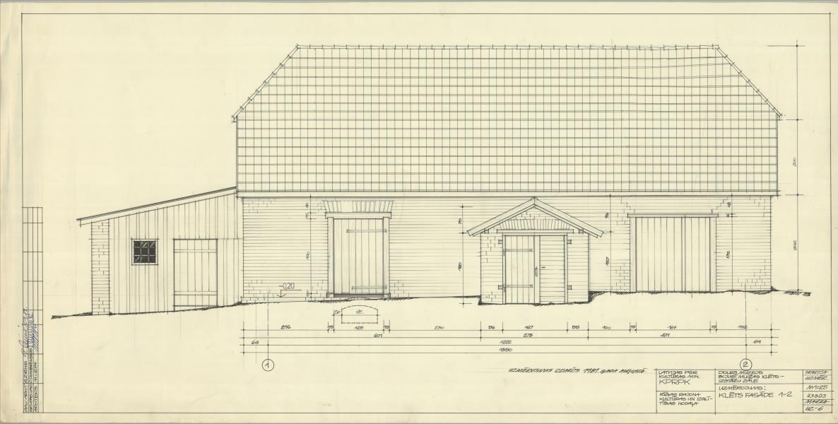 Doles muižas apbūve. Klēts, izstāžu zāle. Fasāde 1-2 (Salaspils novads, Salaspils pagasts. Daugavas muzejs.)