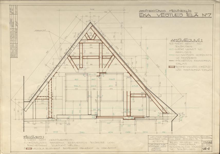 Dzīvojamo ēku komplekss. Ielas fasādes zelmiņa fahmerka konstrukcija, iekšpuse ( Rīga. Klostera iela 7.)