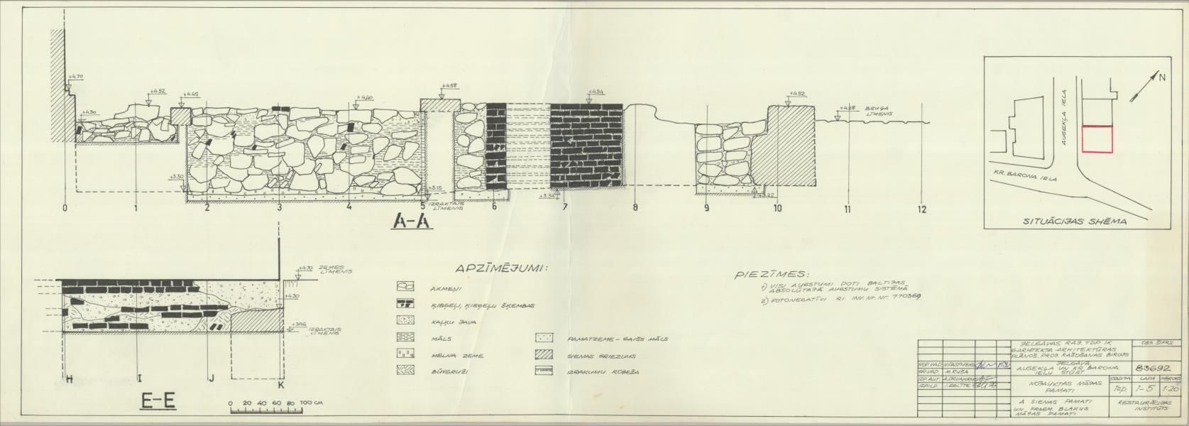 Nojauktas mājas pamati. Austrumu sienas pamati un fragmenti blakus mājas pamatiem, situācijas shēma ( Jelgava. Vecpilsētas iela 21.)