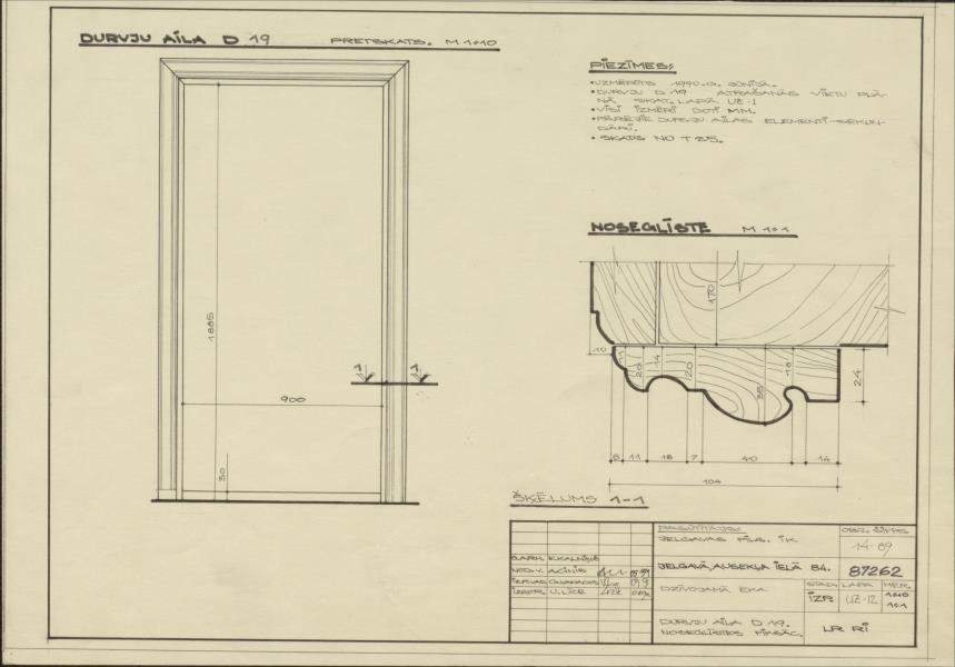 Dzīvojamā ēka. Durvjailas D19 noseglīste ( Jelgava. Vecpilsētas iela 14.)