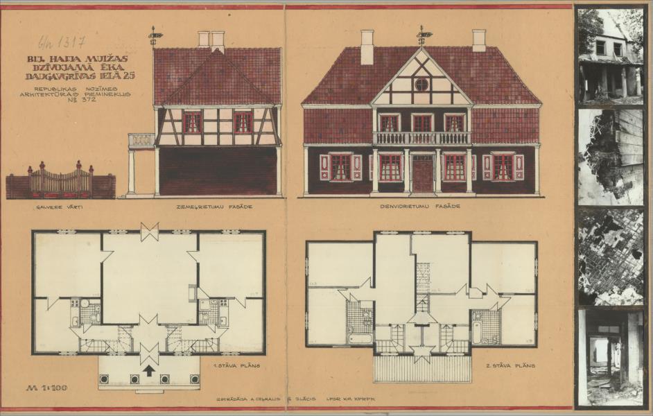 Heija muižiņas dzīvojamā ēka. Fasādes, vārti, 1. stāvs, 2. stāvs ( Rīga. Daugavgrīvas iela 25.)