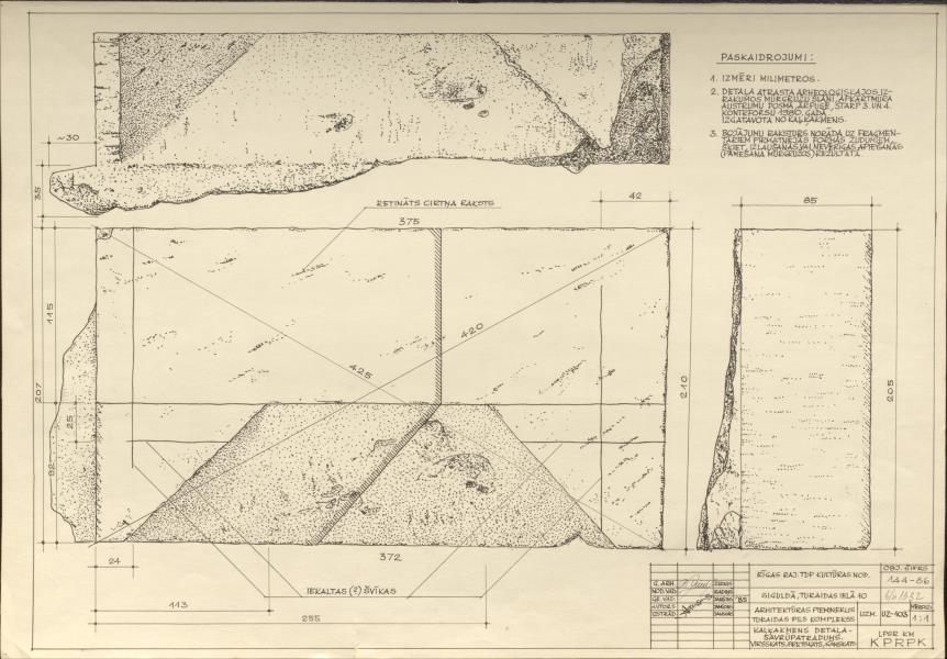 Turaidas pilskalns un viduslaiku pils. Kaļķakmens detaļa - savrupatradums (Siguldas novads, Sigulda. Turaidas iela 10.)