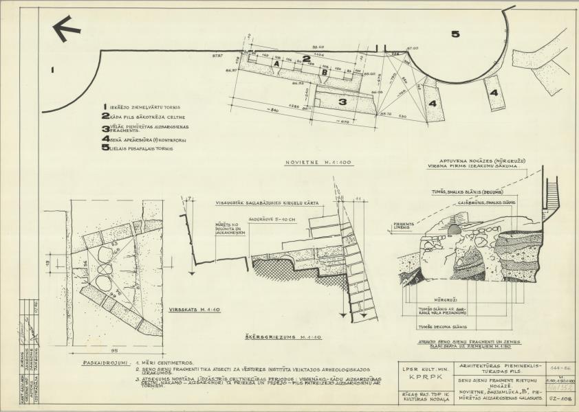 Turaidas pilskalns un viduslaiku pils. Sienu fragmenti R nogāzē; piemūrētā aizsargsiena (Siguldas novads, Sigulda. Turaidas iela 10.)