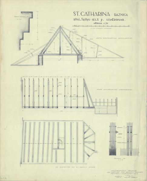 Svētās Katrīnas Romas katoļu baznīcas paiekas. Jumts, konstrukcijas, detaļas ( Rīga. Šķūņu iela 9.)