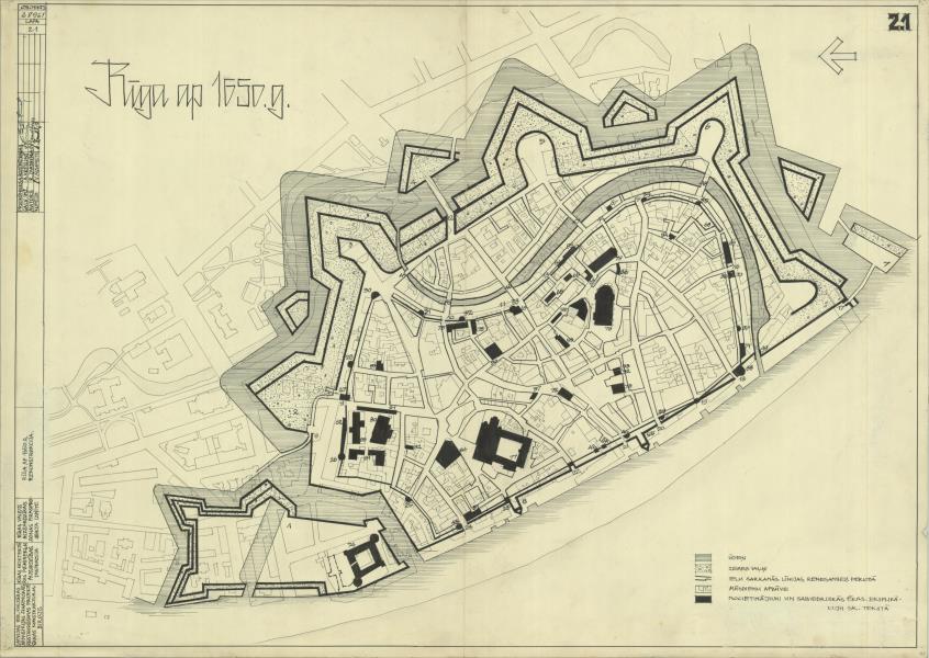 Rīga ap 1650. g. rekonstrukcija. Rīgas aizsardzības zonas pirmsprojekta izpēte ( Rīga.)