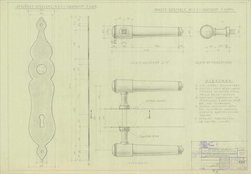 Dzīvojamā ēka. Galvenā portāla durvju atslēgas apkalumi un rokturi ( Rīga. Riharda Vāgnera iela 13.)