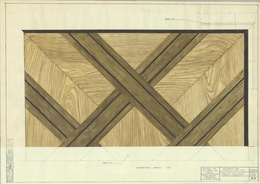 Dzīvojamā ēka. Parketa fragments, vairoga marķējums ( Rīga. Grēcinieku iela 18.)