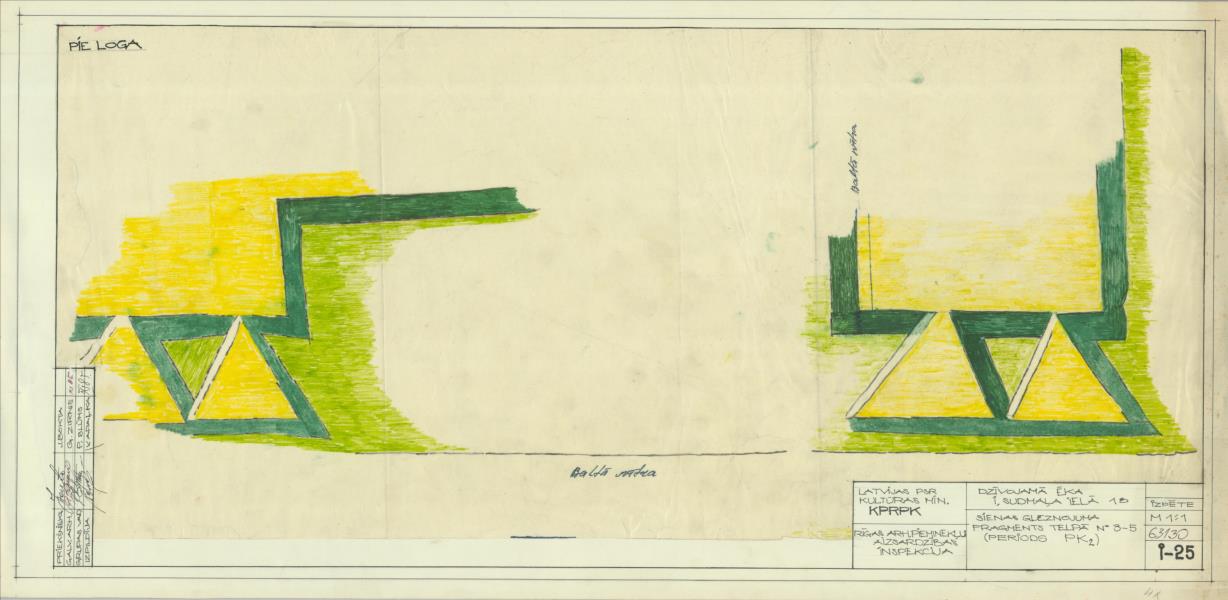 Dzīvojamā ēka. Sienas gleznojuma fragments telpā ( Rīga. Grēcinieku iela 18.)