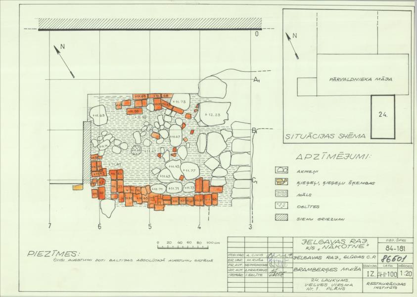 Bramberģes muiža. Arheoloģisko izrakumu 24. laukums, velves virsma Nr. 1 (Jelgavas novads, Glūdas pagasts. Bramberģes pils.)