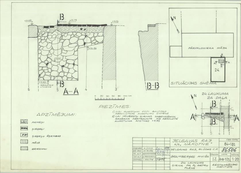 Bramberģes muiža. Arheoloģisko izrakumu 24. laukums, siena pa D1 metru (Jelgavas novads, Glūdas pagasts. Bramberģes pils.)