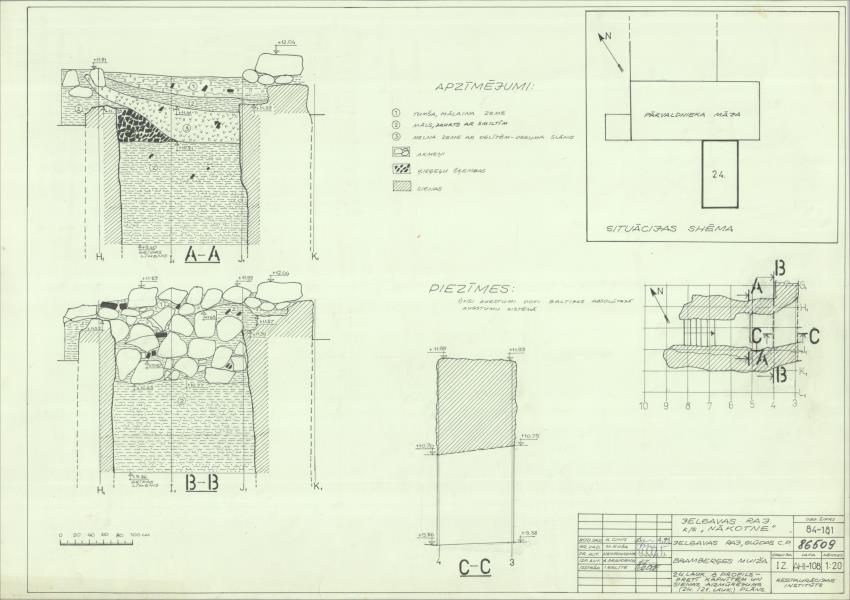 Bramberģes muiža. Arheoloģisko izrakumu 24. laukums, A profils, sienas aizmūrējums (Jelgavas novads, Glūdas pagasts. Bramberģes pils.)