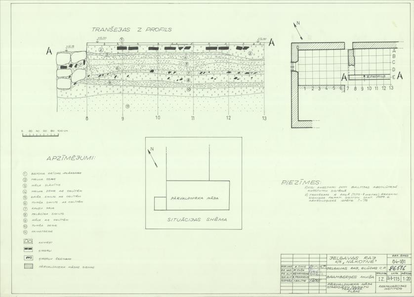Bramberģes muiža. Pārvaldnieka māja, starpsienu pamatu tranšeja (Jelgavas novads, Glūdas pagasts. Bramberģes pils.)