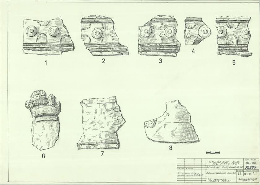 Bramberģes muiža. Arheoloģisko izrakumu 24. laukums, krāsns podiņi (Jelgavas novads, Glūdas pagasts. Bramberģes pils.)