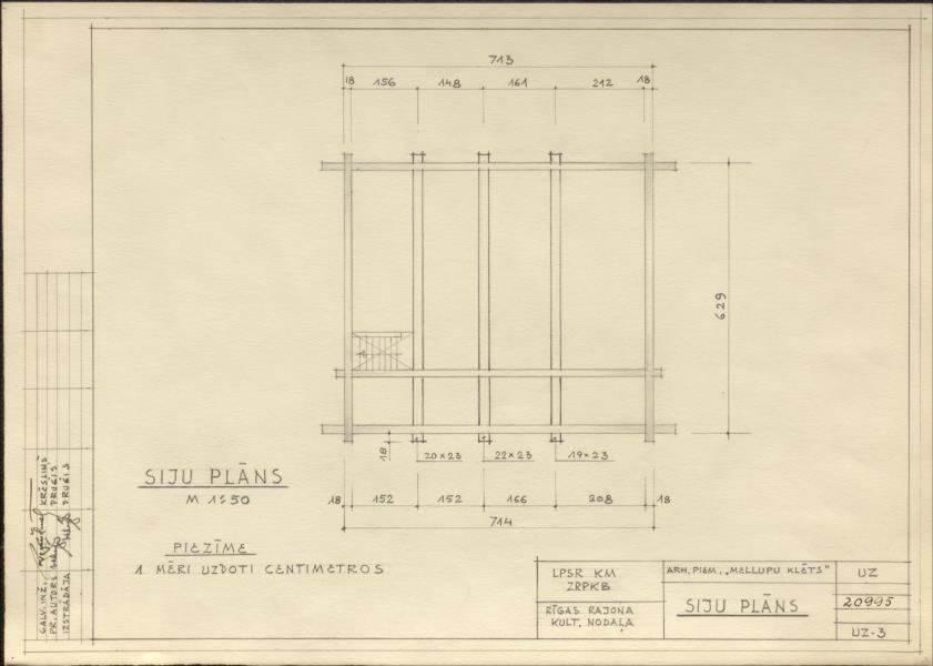 Doles muižas apbūve. Mellupu klēts, sijas (Salaspils novads, Salaspils pagasts. Daugavas muzejs.)