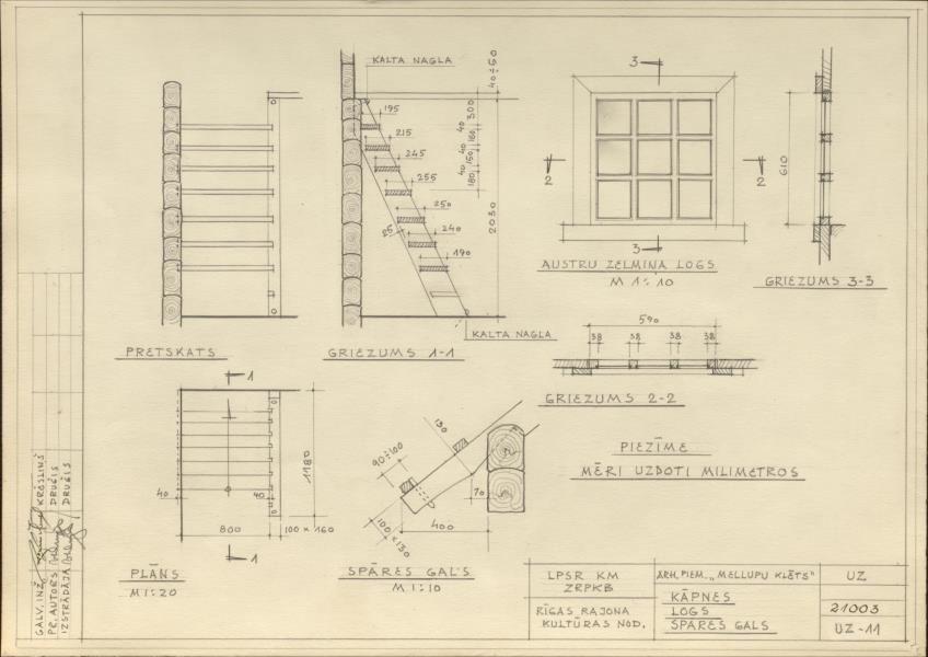 Doles muižas apbūve. Mellupu klēts, kāpnes, logs, spāres gals (Salaspils novads, Salaspils pagasts. Daugavas muzejs.)