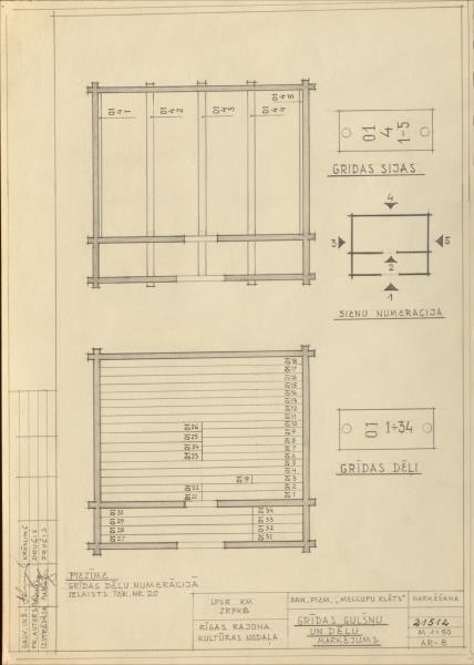 Doles muižas apbūve. Mellupu klēts, grīdas gulšņu un dēļu marķējums (Salaspils novads, Salaspils pagasts. Daugavas muzejs.)