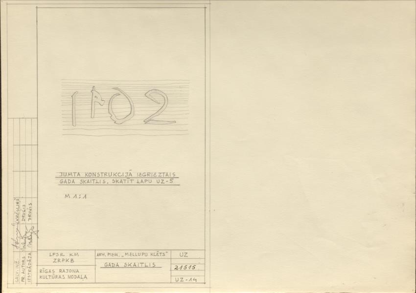 Doles muižas apbūve. Mellupu klēts, jumta konstrukcijā izgrieztais gada skaitlis (Salaspils novads, Salaspils pagasts. Daugavas muzejs.)