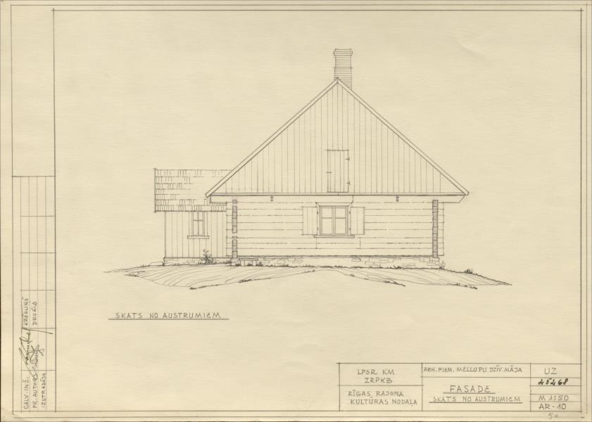 Doles muižas apbūve. Mellupu dzīvojamā māja, fasāde (Salaspils novads, Salaspils pagasts. Daugavas muzejs.)