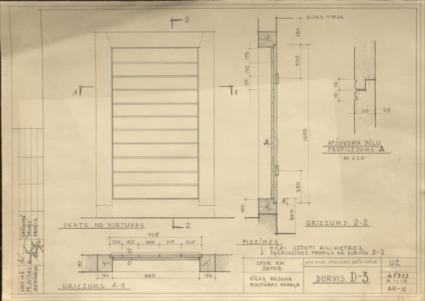 Doles muižas apbūve. Mellupu dzīvojamā māja, durvis D-3 (Salaspils novads, Salaspils pagasts. Daugavas muzejs.)