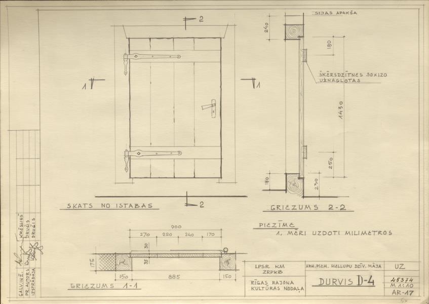Doles muižas apbūve. Mellupu dzīvojamā māja, durvis D-4 (Salaspils novads, Salaspils pagasts. Daugavas muzejs.)