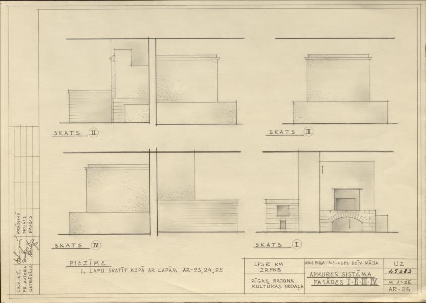 Doles muižas apbūve. Mellupu dzīvojamā māja, apkures sistēma fasādes I-II-III-IV (Salaspils novads, Salaspils pagasts. Daugavas muzejs.)