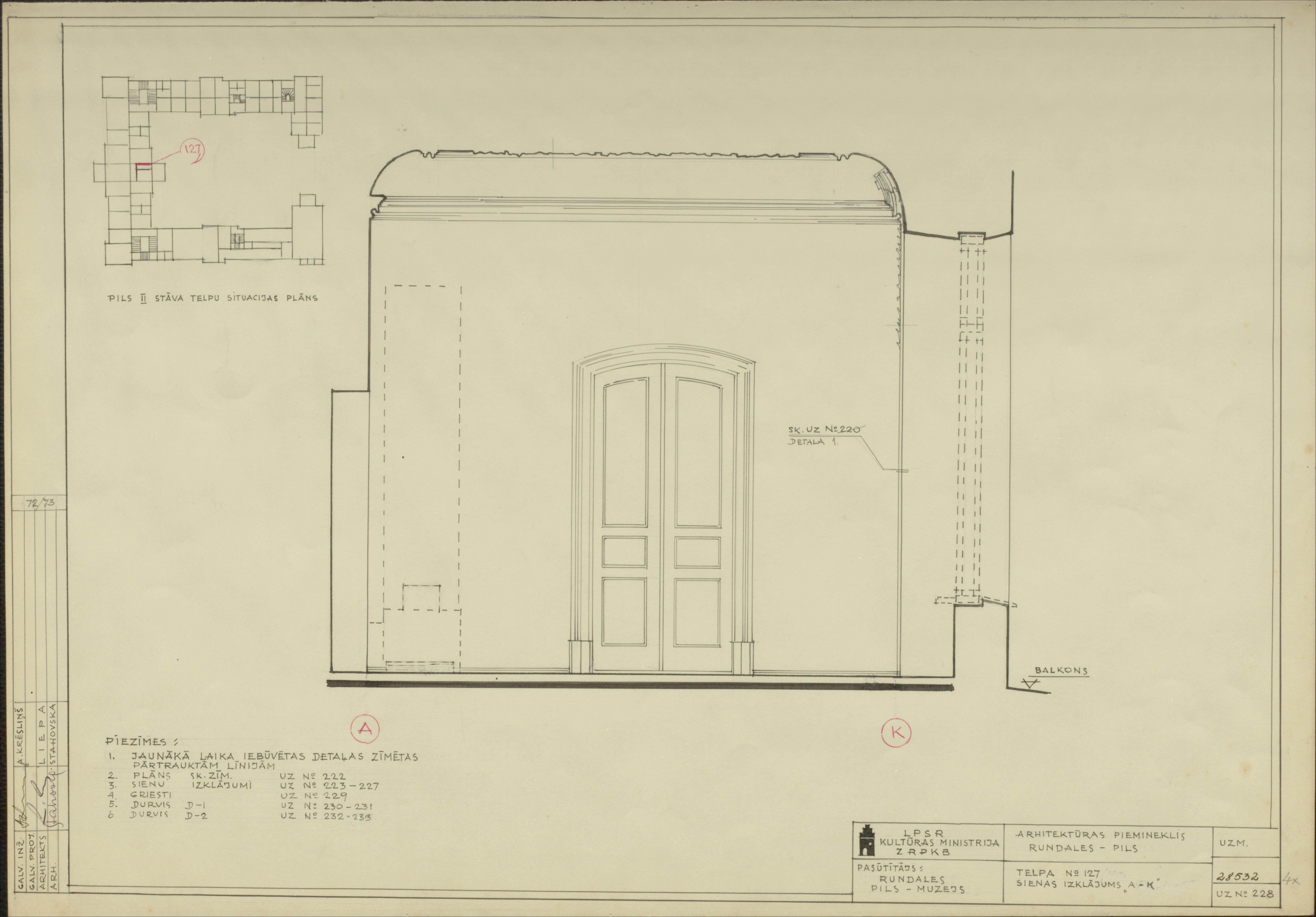 Rundāles pils. Telpa nr. 127 (Rundāles novads, Rundāles pagasts. Pilsdrundāle. Rundāles pils.)