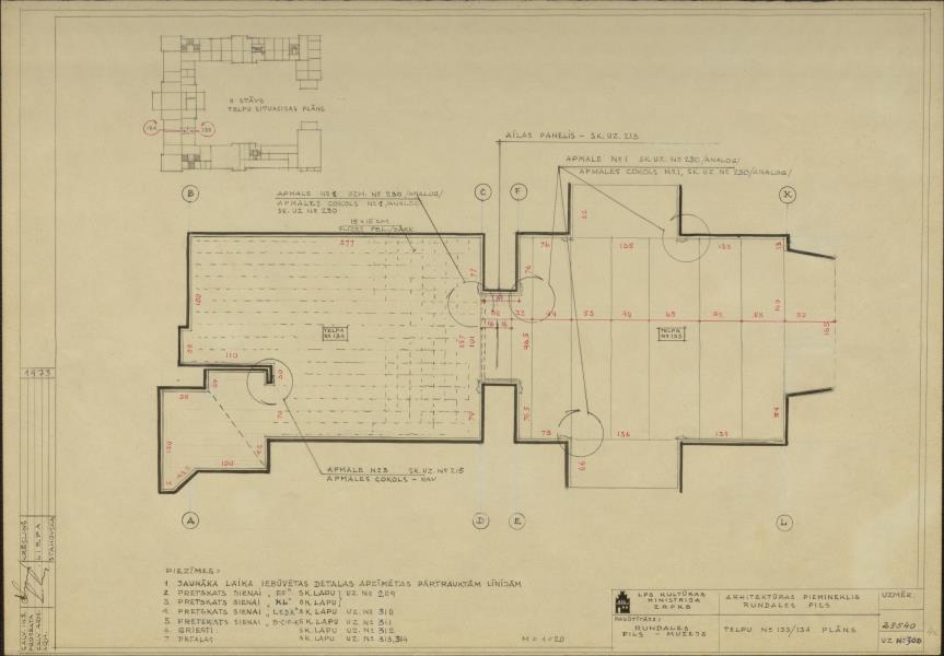 Rundāles pils. Telpas nr. 133/134 (Rundāles novads, Rundāles pagasts. Pilsdrundāle. Rundāles pils.)
