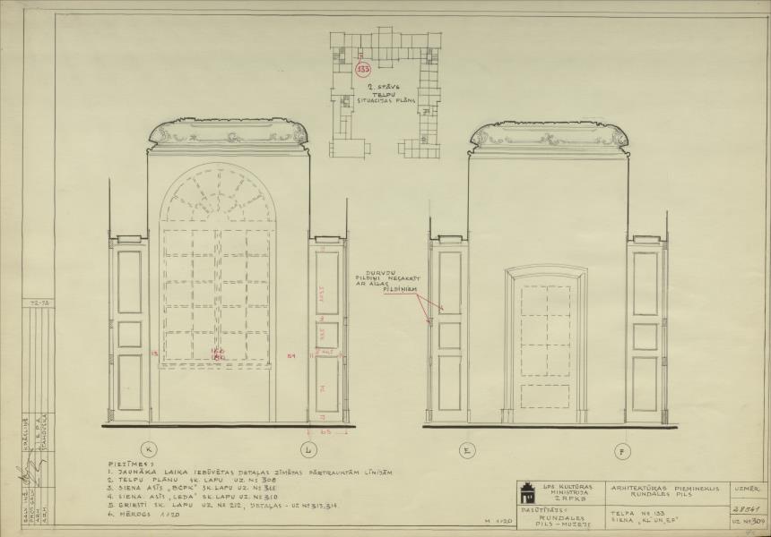 Rundāles pils. Telpa nr. 133, sienas (Rundāles novads, Rundāles pagasts. Pilsdrundāle. Rundāles pils.)