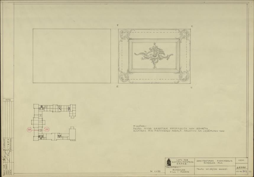 Rundāles pils. Telpas nr. 133/134, griesti (Rundāles novads, Rundāles pagasts. Pilsdrundāle. Rundāles pils.)