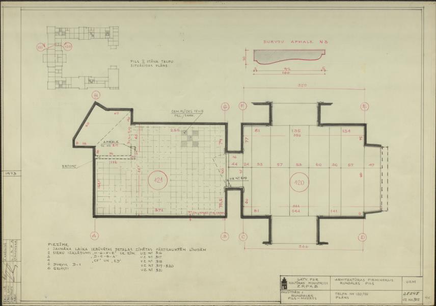 Rundāles pils. Telpa nr. 120/121 (Rundāles novads, Rundāles pagasts. Pilsdrundāle. Rundāles pils.)