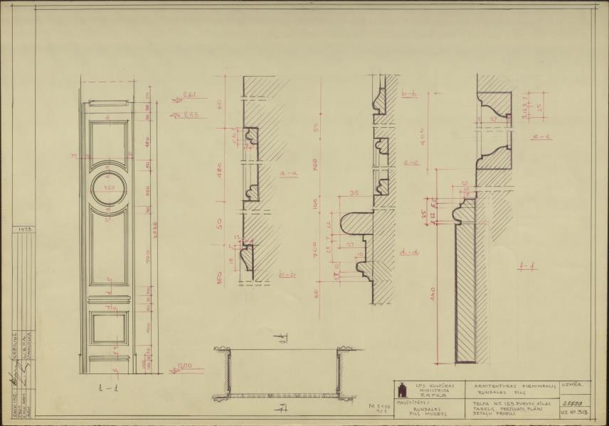 Rundāles pils. Telpas nr. 133 durvis, aila (Rundāles novads, Rundāles pagasts. Pilsdrundāle. Rundāles pils.)