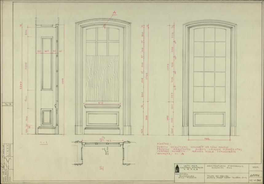 Rundāles pils. Telpas nr. 120/121 durvis (Rundāles novads, Rundāles pagasts. Pilsdrundāle. Rundāles pils.)