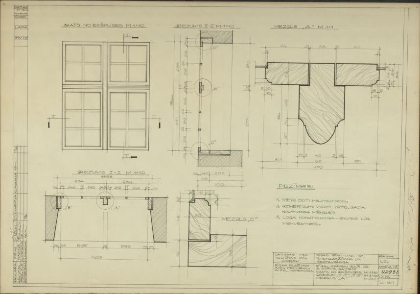Skats no fasādes, griezumi