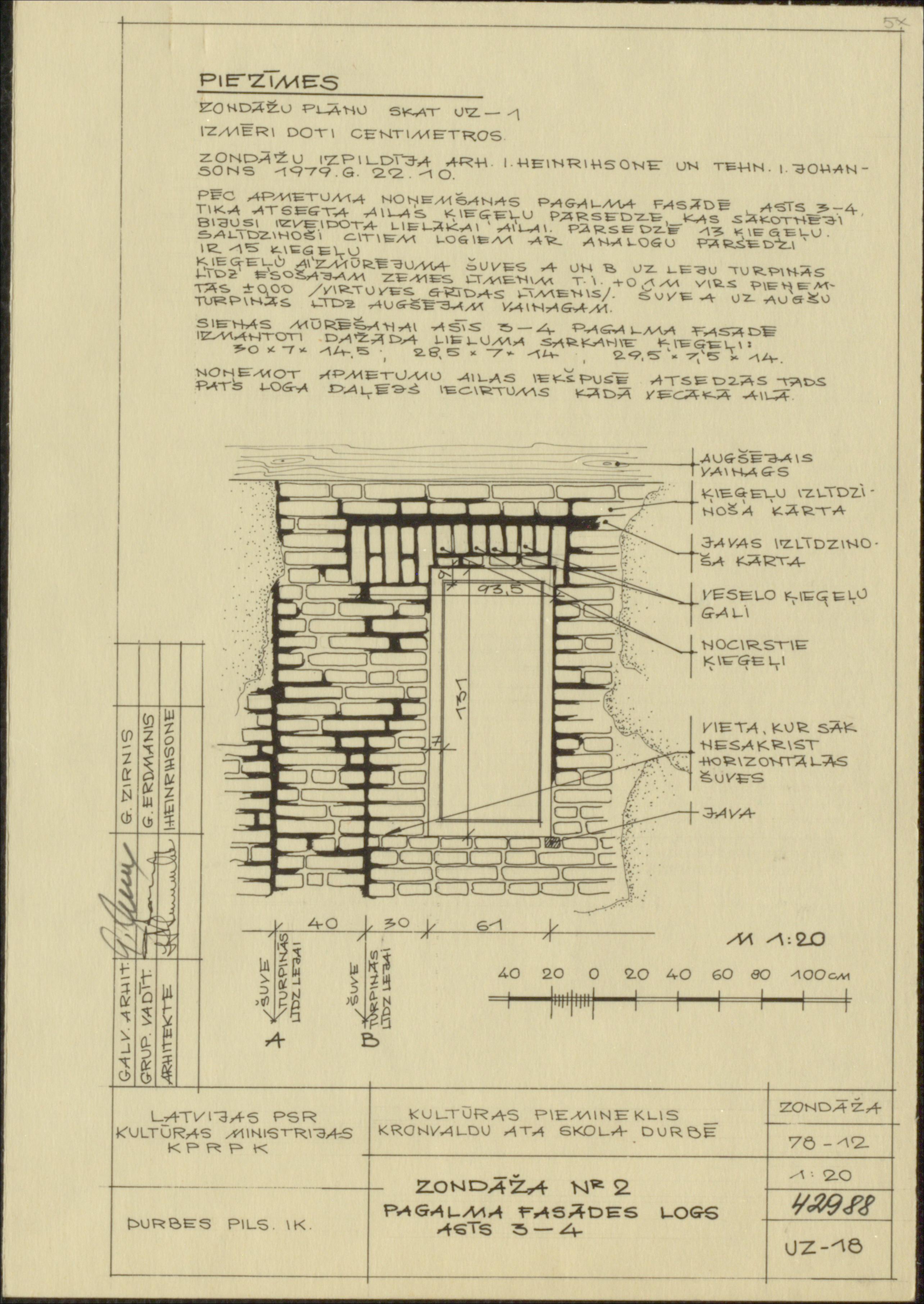 Bijusī Špringera pamatskola. Zondāža nr. 2. Pagalma fasādes logs asīs 3-4 (Durbes novads, Durbe. Skolas iela 3.)