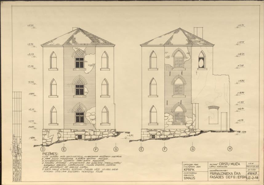Cirstu muižas apbūve. Pārvaldnieka ēka. Fasādes (Vecpiebalgas novads, Inešu pagasts. Cirstu pils.)