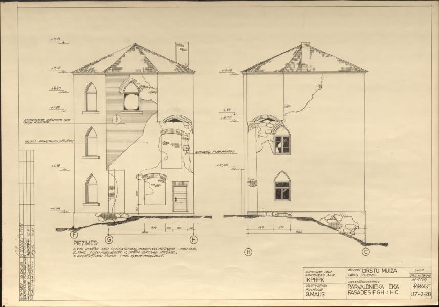 Cirstu muižas apbūve. Pārvaldnieka ēka. Fasādes (Vecpiebalgas novads, Inešu pagasts. Cirstu pils.)