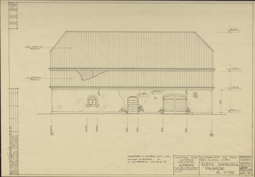 Padures muižas apbūve. Klēts. Dienvidu fasāde (Kuldīgas novads, Padures pagasts. Padure. Padures klēts.)