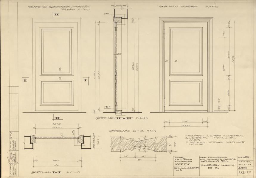 Skats no koridora priekštelpas, skats no istabas, griezumi