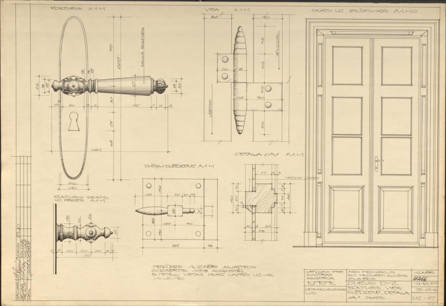 Padures muižas apbūve. Muižas dzīvojamā ēka. Durvis, rokturis, vira, slēdzene, detaļa (Kuldīgas novads, Padures pagasts. Padure. Pils.)