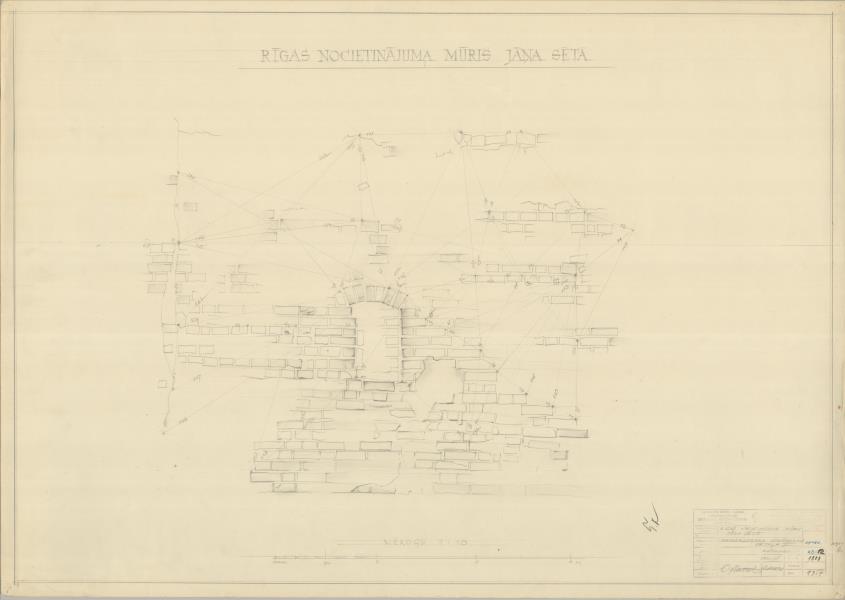 Pilsētas nocietinājumu mūru un torņu paliekas. Arheoloģijas uzmērījumi, detaļa ( Rīga. Jāņa sēta .)