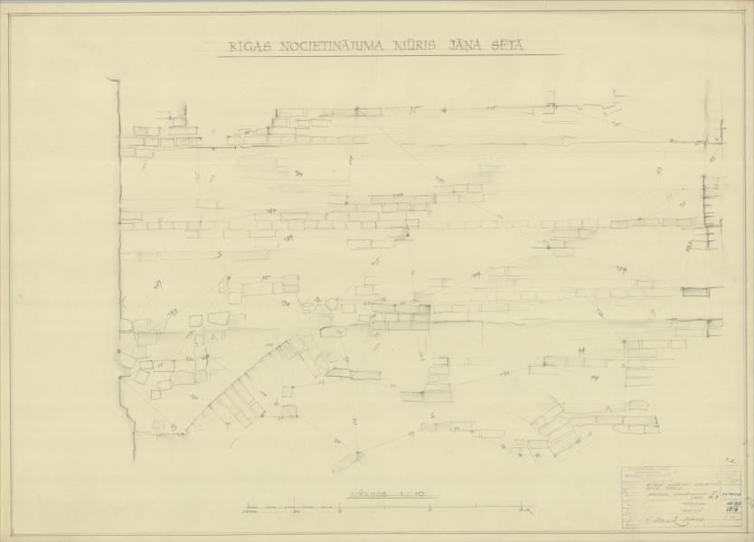 Pilsētas nocietinājumu mūru un torņu paliekas. Arheoloģijas uzmērījumi, detaļa ( Rīga. Jāņa sēta .)