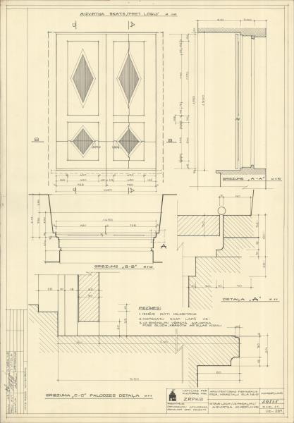 Dzīvojamā ēka. 1. stāva logs (uz pagalmu), aizvirtnis, detaļas ( Rīga. Mārstaļu iela 19.)