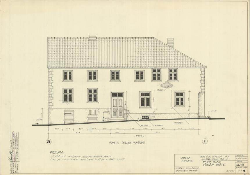 Dzīvojamā ēka. Dienvidu fasāde (Kuldīgas novads, Kuldīga. Pasta iela 1.)