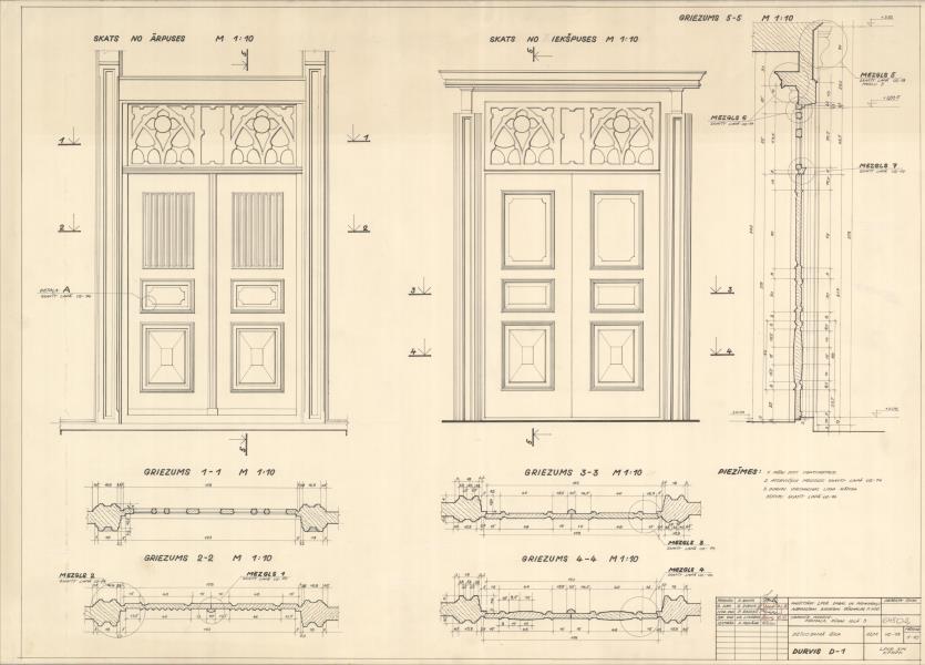 Skats no ārpuses, skats no iekšpuses, griezumi, mezgli