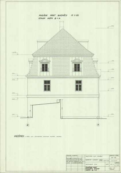 Sāpju Dievmātes katoļu baznīca ar ēku kompleksu. Dzīvojamā ēka, fasāde ( Rīga. Pils iela 5.)