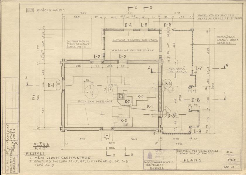 Latvijas etnogrāfiskais brīvdabas muzejs celtņu komplekss. Podnieka ceplis Lejasciema Čipatos, Plāns ( Rīga. Bonaventuras iela 10.)