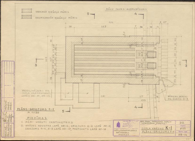 Latvijas etnogrāfiskais brīvdabas muzejs celtņu komplekss. Podnieka ceplis Lejasciema Čipatos, Cepļa krāsns K-1 plāns ( Rīga. Bonaventuras iela 10.)